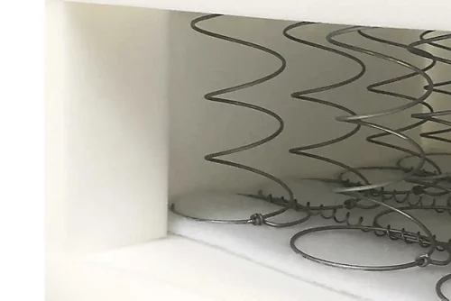A High-quality mattress made with the traditional Bonnell open coil spring system using 13.5 gauge metal springs for durability. The spring system is encapsulated in layers of high-density foam to ensure comfort and support for your body. The mattress is fitted with a soft quilted, breathable protective sanitised cover with hyper-allergenic & anit-dust mite properties. This spring mattress is of medium firmness and has a bit more bounce compared to memory foam or pocket sprung mattresses which are generally firmer. Note: As our mattresses are vacuum rolled, we advise 72 hours for the mattress to inflate to its full depth. Pros: Fantastic quality traditional mattress at a super low price. Highest quality 13.5 gauge springs for more support. Vacuum rolled packed for easy handling. Soft quilted hyper-allergenic sanitised cover. Medium comfort rating. Save £££’s compared to branded high street spring mattresses. The Cover: Our mattress has a soft quilted cover to provide a flatter more comfortable sleeping surface as opposed to tufted covers, which may look posh but can get uncomfortable. The mattress cover is made from breathable knitted fabric to promote air circulation for a more comfortable night’s sleep. It benefits from being fully sanitised with hypo-allergenic & anti-dust mite properties. The cover has stitched bound border support – support all the way to the edge! What’s Inside? The traditional Bonnell coil spring system is fully encapsulated in high-quality super thick super dense support foam. This is a special type of foam used in furniture manufacture to ensure longevity. Bonnell coil springs are thick hour glass-shaped coils all threaded together to create a strong and stable support system. Using strong a 13.5 gauge spring system ensures the best body support.
