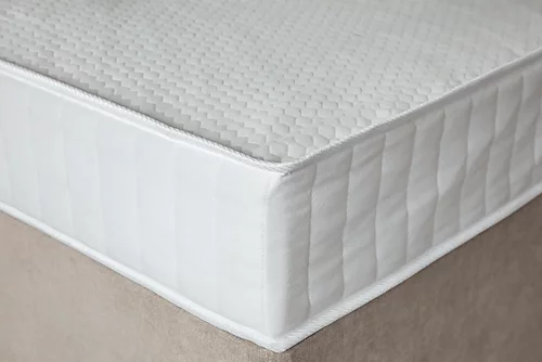 A High-quality mattress made with the traditional Bonnell open coil spring system using 13.5 gauge metal springs for durability. The spring system is encapsulated in layers of high-density foam to ensure comfort and support for your body. The mattress is fitted with a soft quilted, breathable protective sanitised cover with hyper-allergenic & anit-dust mite properties. This spring mattress is of medium firmness and has a bit more bounce compared to memory foam or pocket sprung mattresses which are generally firmer. Note: As our mattresses are vacuum rolled, we advise 72 hours for the mattress to inflate to its full depth. Pros: Fantastic quality traditional mattress at a super low price. Highest quality 13.5 gauge springs for more support. Vacuum rolled packed for easy handling. Soft quilted hyper-allergenic sanitised cover. Medium comfort rating. Save £££’s compared to branded high street spring mattresses. The Cover: Our mattress has a soft quilted cover to provide a flatter more comfortable sleeping surface as opposed to tufted covers, which may look posh but can get uncomfortable. The mattress cover is made from breathable knitted fabric to promote air circulation for a more comfortable night’s sleep. It benefits from being fully sanitised with hypo-allergenic & anti-dust mite properties. The cover has stitched bound border support – support all the way to the edge! What’s Inside? The traditional Bonnell coil spring system is fully encapsulated in high-quality super thick super dense support foam. This is a special type of foam used in furniture manufacture to ensure longevity. Bonnell coil springs are thick hour glass-shaped coils all threaded together to create a strong and stable support system. Using strong a 13.5 gauge spring system ensures the best body support.