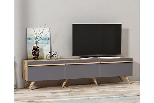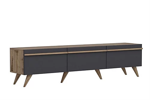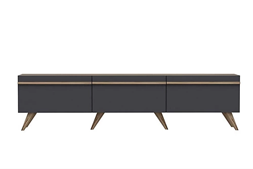 This high-quality TV stand reflects an elegant view with its retro modern style, colour and materials. It offers plenty of storage area that provides additional space for your decorative items and books. The TV unit offers many shelves and compartments.