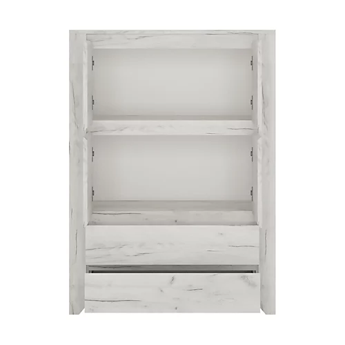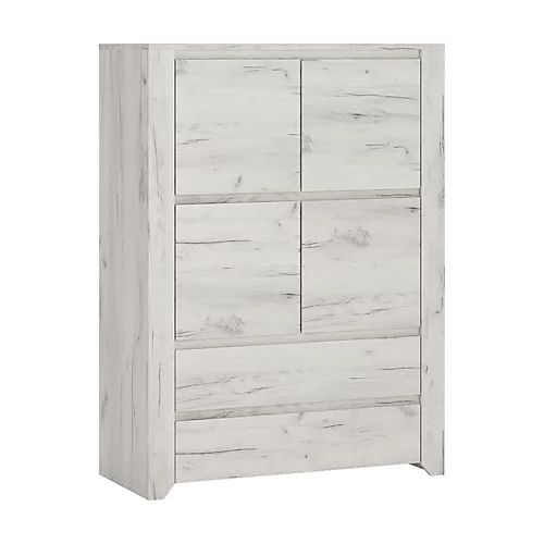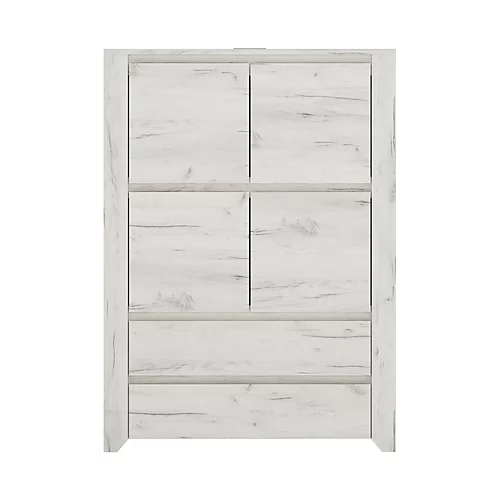 4 Door 2 Drawer Cupboard. This beautiful bedroom collection is contemporay and stylish and suitable for all age groups, finished in a modern hard wearing white crafted Oak melamine. This compact cabinet has interior shelving behind 3 square doors, and 2 handy drawers.