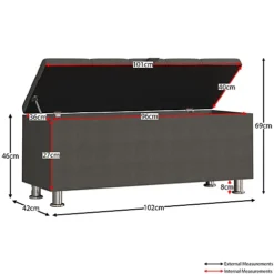 Vida Designs Valencia Storage Ottoman Dark Grey Linen Storage Bench Chest Bedroom Living RoomÂ