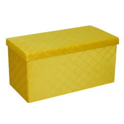 Foldable Faux Leather Storage Box Ottoman Cube 76cmX38cm For Bedroom, Living Room, Hallway – Yellow