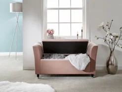 Foldable 76x38cm Crushed Velvet Storage Bench Box Chest Ottoman Footstool Navy Natural
