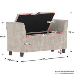 Vida Designs Seville Storage Ottoman Dark Grey Linen Storage Bench Chest Bedroom Living RoomÂ
