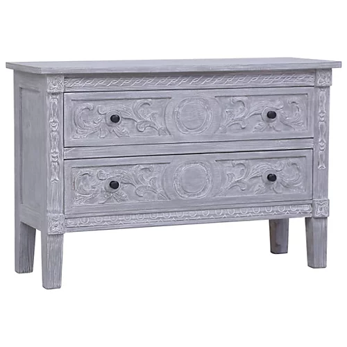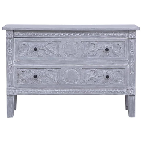 Introduce an icon of mid-century modern glamour into your interior with our elegant and functional sideboard! Made of solid mahogany wood with grey wash finish, the solid wood drawer cabinet is exceedingly durable and sturdy. Mahogany is a tropical hardwood, standing out with its beauty, durability and colour. The strong legs contribute to the sturdy construction. Additionally, equipped with 2 drawers, the cabinet provides ample space for storing your multimedia appliances, books, as well as various other items. Our solid wooden sideboard is easy to assemble.