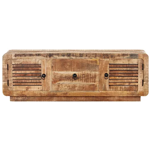 The wooden TV cabinet features a classic style and makes it a perfect choice for your current interior living space. The stereo cabinet is made of rough mango wood with a natural finish, a tropical hardwood with the strength to bear the weight. It also stands the wear and tear of time, making it stable and durable. The craftsmanship and the beautiful wood grains make every piece of furniture unique and slightly different from the next. The media unit also features two doors and a drawer providing ample storage space. The sturdy top can also be used to display decorative objects such as photo frames, potted plants, vases, etc. Important note: Colours and grains vary from piece to piece, making each piece unique; the delivery is random.