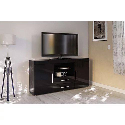 The sleek and stylish Edgeware 2 Drawer Sideboard will look stunning in any living room thanks to it’s high gloss facial. This combination of closed and open storage spaces in this modern sideboard makes it a highly functional piece with clean lines for a contemporary style. Featuring 2 handy pull out drawers this is ideal for storing DVD’s plus an open compartment for electronic devices and 2 hidden storage cabinets. The maximum recommended size of TV to be used is 55″.