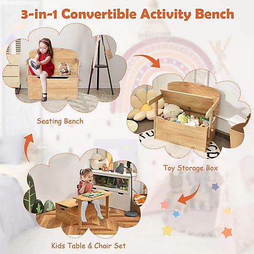 Costway 3-in-1 Kids Convertible Activity Bench Toy Box