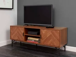 This Dark Chevron collection offers a modern perspective on your home and living furniture with a traditional twist on a contemporary look. This cabinet stores your television equipment, consoles, and accessories in one place, with two spacious cupboards on either end and an open centre shelf. Circular cut-outs at the back enable discrete and organised cable management, while the internal shelf creates two distinct storage levels for your technology.
