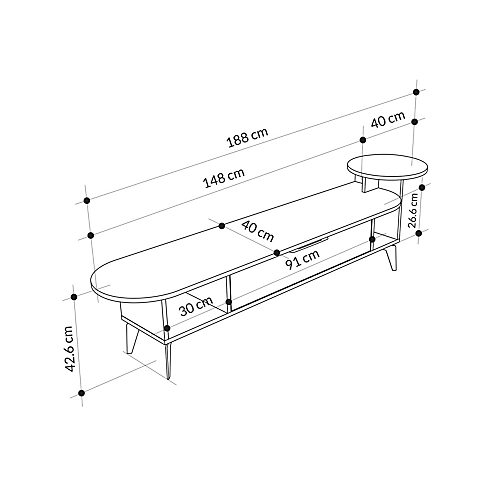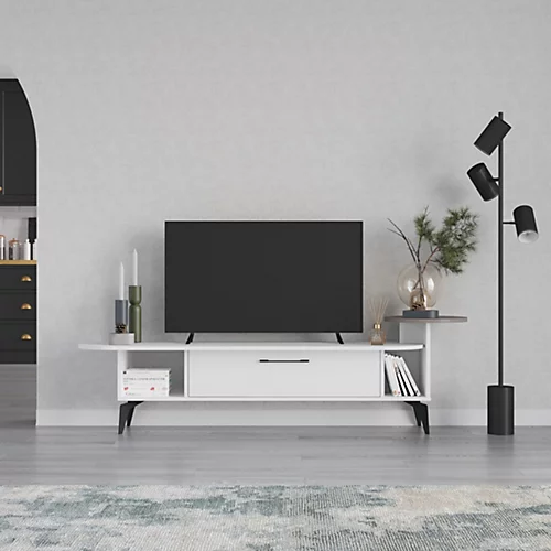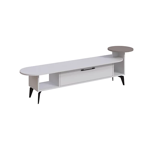 This TV Stand is the perfect choice for any modern living space. With its unique design and stylish metal legs and oval parts, it adds a contemporary touch to any interior. It can accommodate up to 65″ TVs with a total width of 188 cm and features 2 open compartments, and 1 closed compartment with a storage drop door to store all your media items. The entertainment unit also includes a display shelf to showcase your favorite photos, small plants, and other home decor items. With multiple color options available, it can easily fit any interior style. Whether you’re looking for a modern TV stand for your living room, bedroom, or even a home office, this stylish piece of furniture will surely bring out the best in your home!