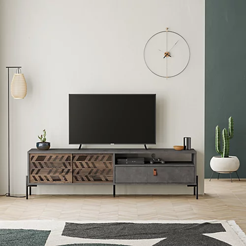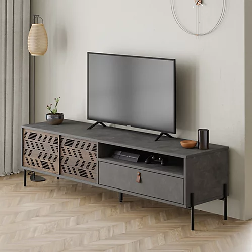 The Dionysos Tv stand is perfect for any modern and contemporary home. Its unique design and laser-cut detailed sliding doors make it a great focal point in any living room. The open compartment and one drawer provide plenty of storage space, while the stylish metal legs give it a modern and chic look. Best of all, it comes in a variety of multicolor options, so you can choose the perfect one for your home.