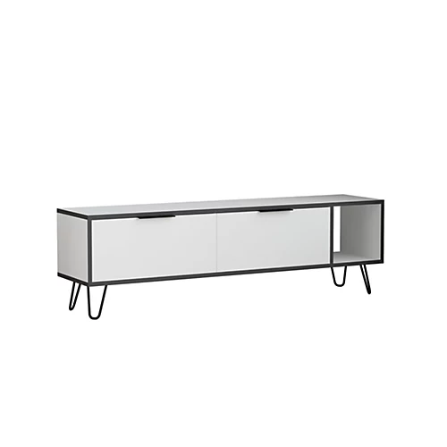 This 150cm wide TV stand is perfect for up to 60″ TVs. It has two cabinets and an open compartment for ample storage space. The modern design with hairpin metal legs is available in multiple colors to match any decor. A great addition to any home entertainment system.