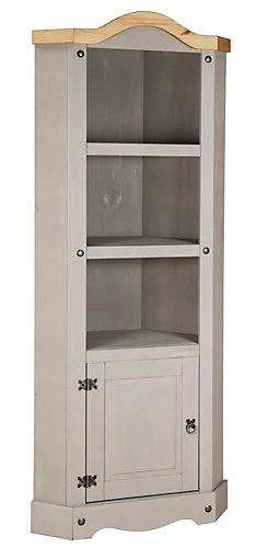 Corona Corner 1 Door 2 Shelf Display Unit In Distressed Waxed Pine