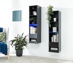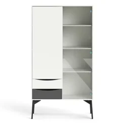 Fribo Tall Narrow 1 Door 3 Drawer Glazed Display Cabinet In White