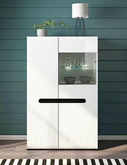 Kensington Tall Narrow 2 Door Glazed Display Cabinet (RHD) In Oak