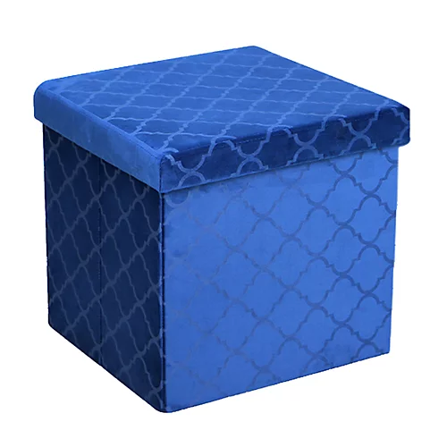 Foldaway Crushed Velvet Storage Box/Ottoman/Toy Box/Bench featuring lattice print details