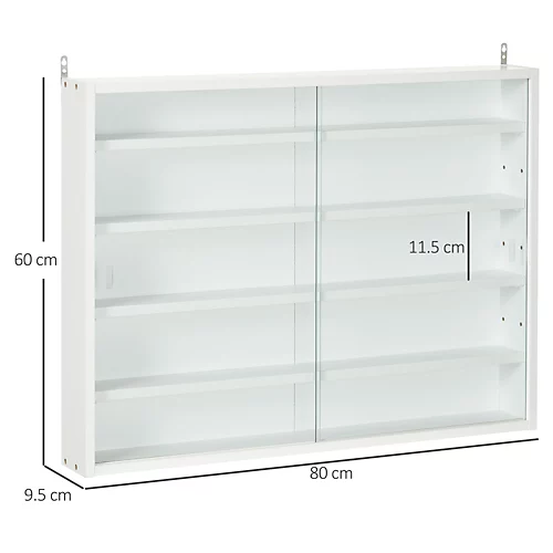 HOMCOM 5-Tier Wall Display Shelf Unit Cabinet W/ Shelves Glass Doors White