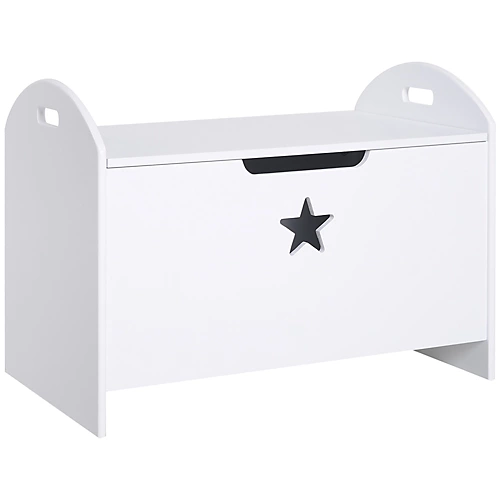 Made from MDF and crafted into a spacious 46.5 x 62cm design, this fresh white storage box is the perfect addition to your child’s room to store all their toys, books and odd bits and bobs. Sturdy in construction to suit children of all ages, it features a handle-style groove and safety hinge to lift the lid up easily and keep it in place, two handles for easy carrying and an elevated base for extra protection to the box. Finished with a cut-out star on the front for extra character.