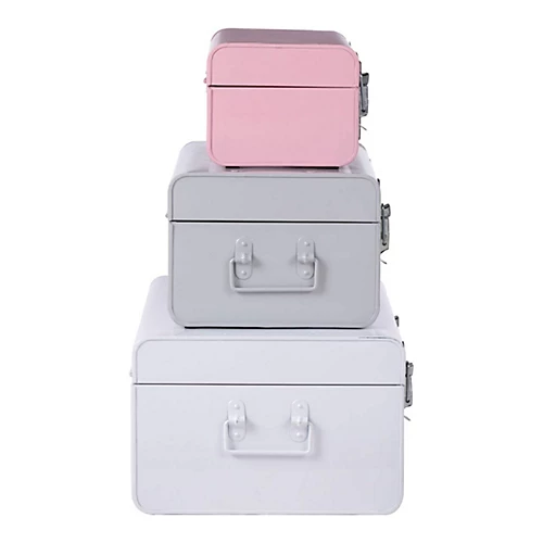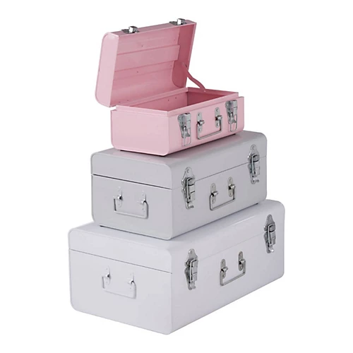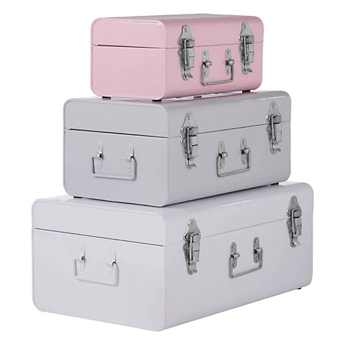 Interiors By Premier Parley Set Of Three Assorted Pink And Grey Storage Trunks