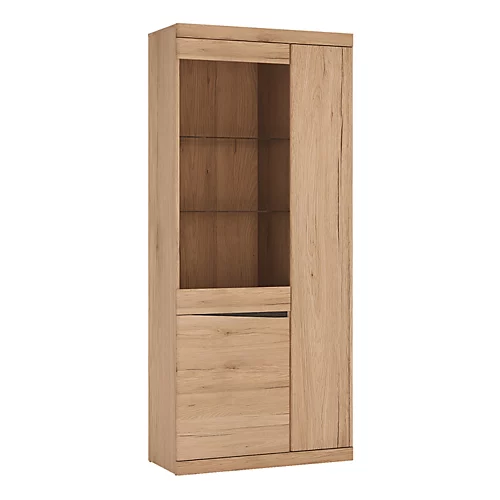 Tall 3 door display cabinet in Oak. This fantastic grained oak finish with the contrasting dark trim makes this modern top quality collection of living room furniture the ideal destination for the most modern or traditional homes.
