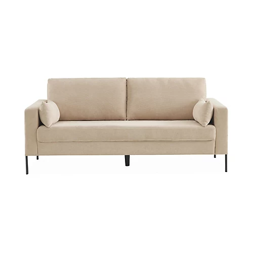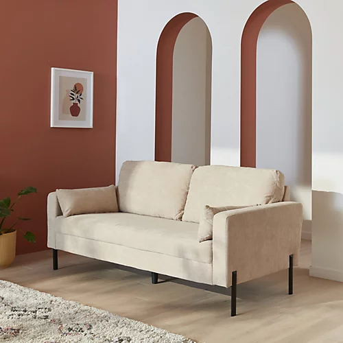 Our BJORN sofa in a box collection has been designed to be a staple collection for everyone. It is classic and timeless and fits perfectly in smaller and larger spaces. The solid construction of the BJORN collection and the black metal legs enhance its style. This sofa will quickly become a must have in your home!The BJORN range is available in several sizes so you can design your lounge area as you wish. We have chosen fabrics and colours that will blend in perfectly with your home. Available in 2 seater sofa and 3 seater sofa models which can be combined for larger spaces.You’re sure to fall for the Bjorn 3 seater sofa! With its minimalist clean design and industrial style metal legs it will enhance the style of your home. It can fit into small spaces making it a practical choice. Its firm deep seat thick backrest and wide padded armrests will ensure optimal comfort.Additional informationPlease note that the legs and cushions are stored in a compartment under the seat. Self assembly product (no tools required).Professional cleaning is recommended. Dust the wooden parts regularly with a clean soft dry cloth. Dimensions:Sofa dimensions with cushions: L180 x W82 x H79cmSofa dimensions without cushions: L180 x W82 x H69cmSeat dimensions: L157 x W69cmSeat height: 45cmBackrest size: 51 x 43 x 19cmBackrest thickness: 19cmArmrest width: 12cmArmrest height: 59cmNumber of cushions: 2Cushion dimensions: L49 x W20 x H12cmLeg height: 17cm