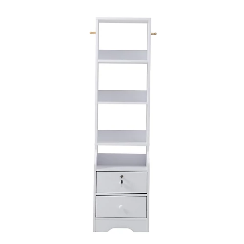 The drawer has a round handle and metal runners for smooth opening and closing.Drawers and open shelves make this shelf a space-saving and practical choice for modern bedrooms.There are two considerate pothooks on both sides of this shelf for clothes or bags hanging.The lockable drawer comes with 2 keys so you can have one for backup.