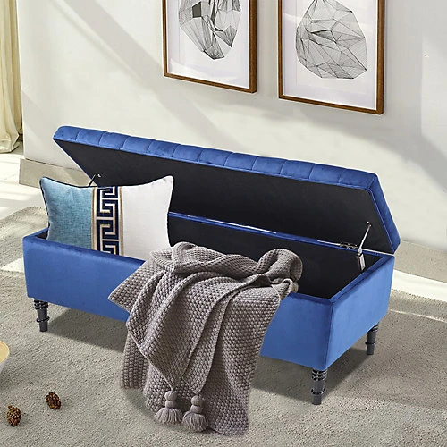 The storage ottoman lifts easily up to reveal storage space, which is ideal for clothing, bed linen, and other household objects. With a storage compartment, this bench helps you keep your room tidy and organized by neatly storing stuff. The hinged lid is designed for easy and safe opening and closing. The wide seat is made for more than one person.