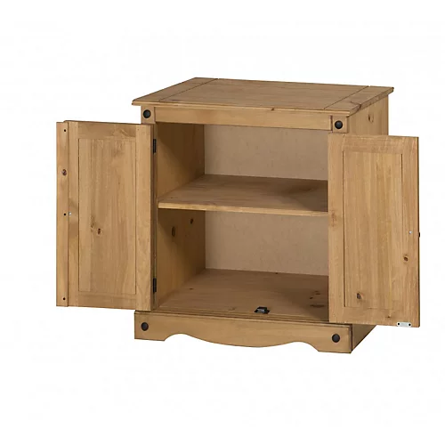 Mercers Furniture is happy to offer this Corona 2 Door Cupboard, expertly crafted from solid pine and hand waxed to preserve as well as enhance the grain. With 2 doors it offers outstanding value for money that would be a welcome addition to any home. The item is finished off with black metal fittings which give the dining set its distinctive Mexican styling and offers that warm rustic country charm. The item has hardboard backs and is delivered flat packed for easy home assembly with step-by-step instructions.