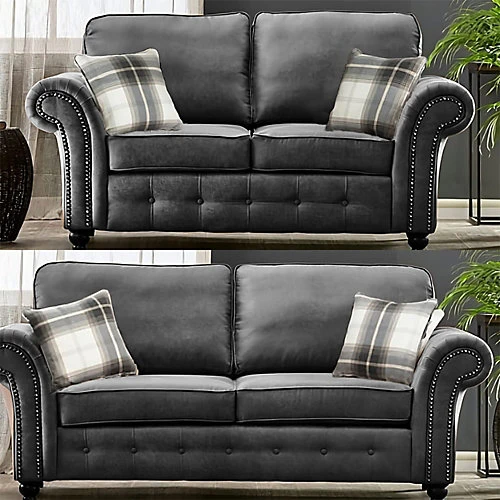 The Oakley range is perfect for those wanting a traditional design but with a glam twist. This 3 plus 2 Seater Sofa offers plenty of space. The Deep Button back border complements the plain padded back. The scroll fronted arms are attractively embellished with lines of individual stud nails.