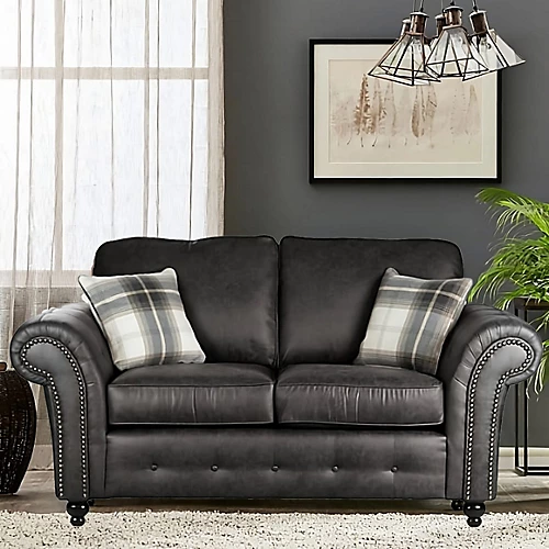 The Oakley sofa gives an elegant and luxurious feel to any living space. This beautifully soft to feel faux leather armchair, features a stylish brass stud and button detailing along with sturdy wooden feet. Made in the UK, the Oakley range has a foam filled seat cushions with fibre filled back cushions to ensure your sofa keeps it shape as well as being comfortable.