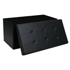 Foldable Faux Leather Storage Box Ottoman Cube 76cmX38cm For Bedroom, Living Room, Hallway – Black