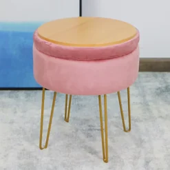 Foldable 38x38cm Cube Faux Leather Storage Box Ottoman Footstool Pink