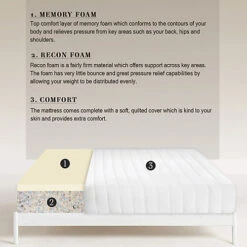 5 Zone Mattress, 16 Cm High-Memory Foam Mattresses With Cleanable Cover, 3FT Single, 90 X 190 Cm