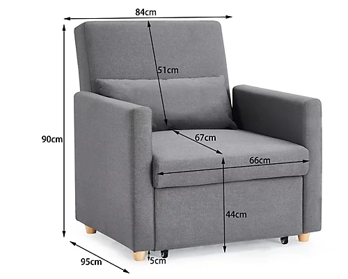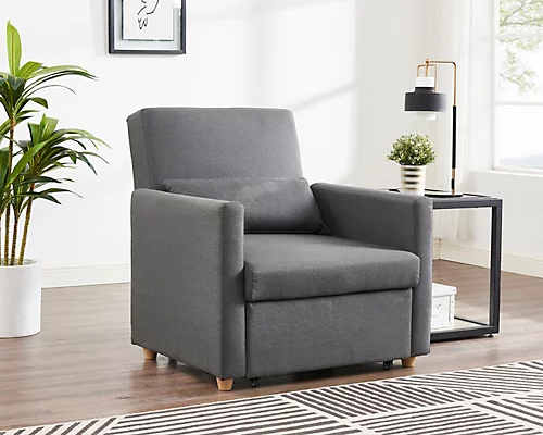 This ROSS chair bed is a contemporary choice for those who need their living space to have added functionality. This chair bed features generously filled padded seat and backrest featuring a matching throw cushion which doubles as a pillow and fixed track armrests.