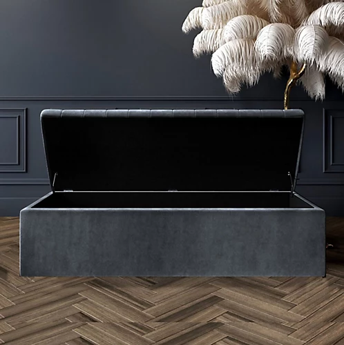 Safar 4ft Ottoman Storage Box – Dark Grey Steel Plush Velvet