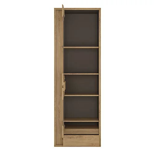 1 Door 1 Drawer Narrow Glazed display cabinet. Enchanting with its simple elegance, Ingenious shape complemented by elegant decor – a perfect marriage. This collection with sharp lines and a bold feeling, fills every living room space requirement.