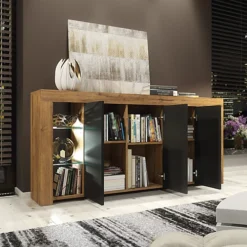 Sideboard TV Unit Display Cabinet Cupboard TV Stand Living Room Matte Doors – Oak & Black