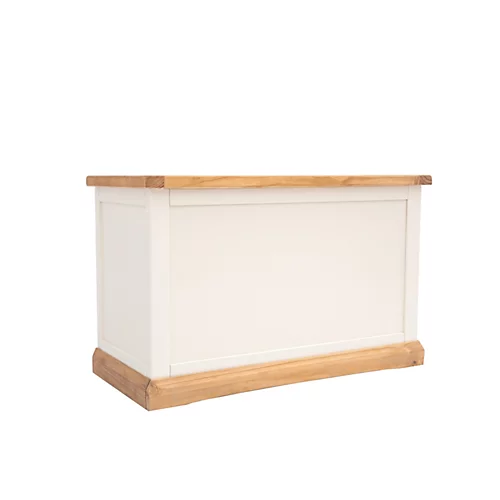 Our Trevi collection has a simple but pleasing design and is produced by our skilled craftsmen to the highest standards using responsibly sourced wood and veneers. All tops are made using a combination of solid pine wood and veneers and are carefully hand waxed giving it a great look. The body is finished with a high quality eco friendly water base paint on an off-white colour. This ottoman is the perfect item to fit in small areas, but still offers plenty of storage space for all your essentials. It comes with a safety holder to avoid accidents and it is made with a solid wood frame and veneer panels, making it very strong and stable, guaranteeing it will last for a long time. The top has a 3cm thick solid wood frame, making it extremely sturdy. These attributes combined with a simple construction for easy assembly makes it a great value product to be taken home today.