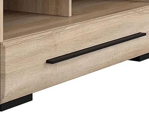 Modern design with black straight handle and black feet and high quality Sonoma Oak wood effect textured finish that gives a realistic appearance of wood with full length drawer and wire vents for ease of cable management.