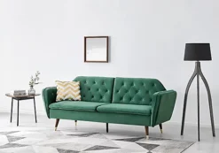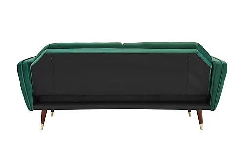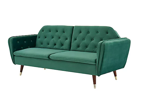 Introducing Whitby, a 3-seater luxury velvet fabric sofa bed. This sofa bed has a traditional style with plenty of modern flair, matching well with many interior styles, it features pulled button detailing on the backrest and inside of the sloping armrests. The standout feature is the splayed wooden legs with metal tips giving it the modern twist. Maximise your space with this sofa bed, it is an ideal solution to your compact living area or guest room.