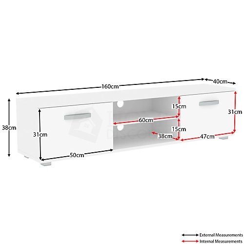 - Matte and Gloss Finish: The Cosmo TV Unit features a matte body finish that adds a sophisticated touch, while the contrasting gloss finish drawer enhances its visual appeal.