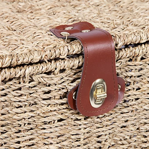 Woodluv Natural Seagrass Lidded Trunk, Toy Box Chest, Storage Basket, Handwoven Organiser – Small